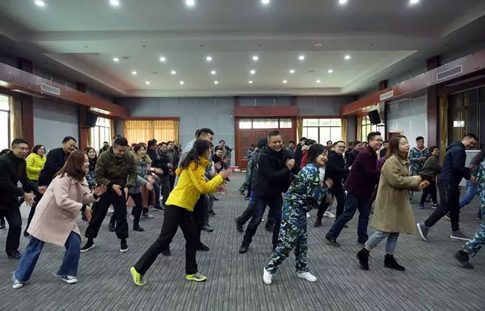 我們一齊圍成一個(gè)圈,互相拍拍肩、捶捶背,認(rèn)識(shí)熟悉,鼓勁加油。玩兒個(gè)“聽(tīng)口令”的小游戲,被抓到的同志可是要上臺(tái)表演節(jié)目呢!
